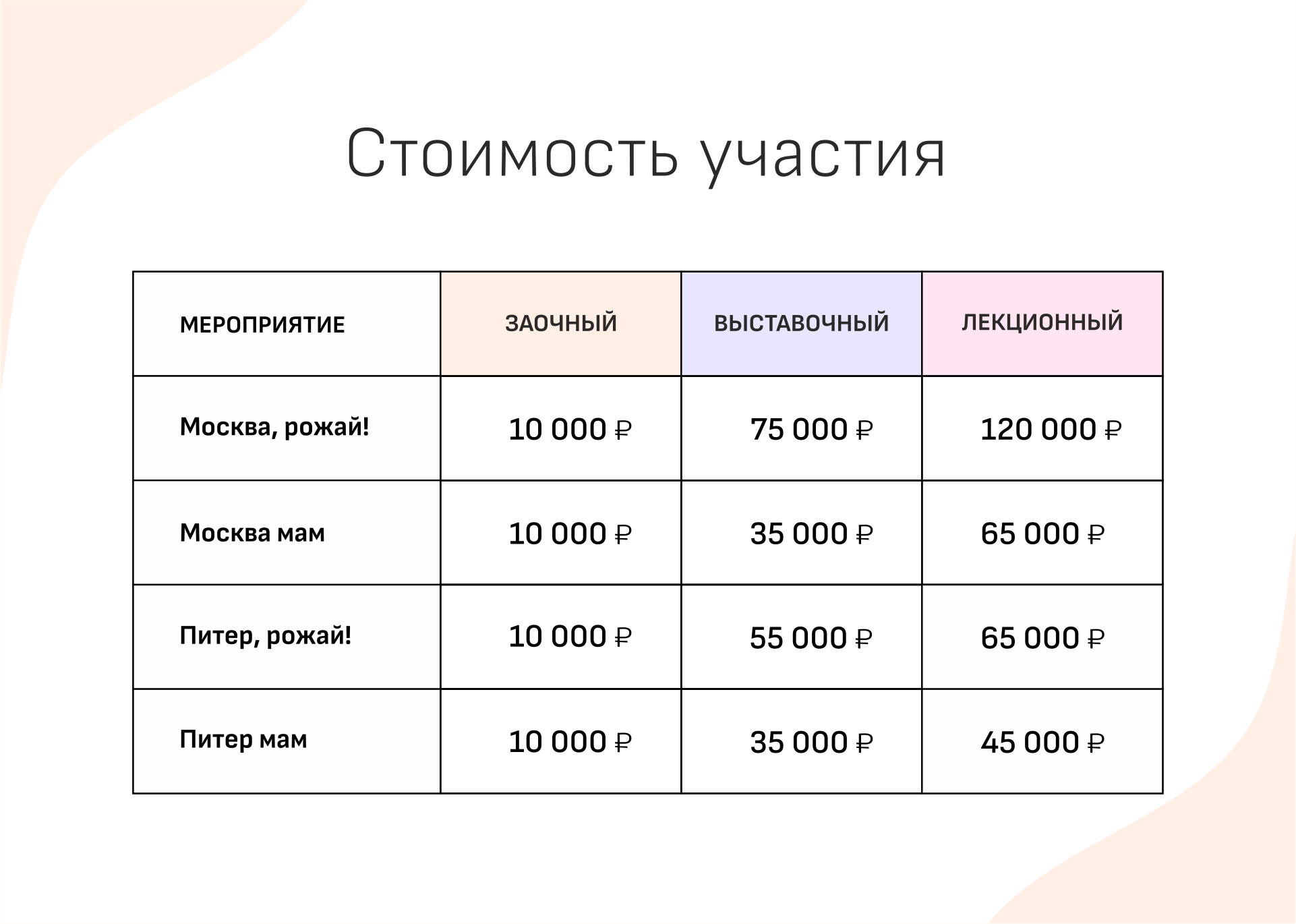 | 400-450 беременных из Санкт-Петербурга. Разделенные на утреннюю и дневную сессии, они предоставляют вам уникальный доступ к целевой аудитории. Встреча в центре города, гостиница "Октябрьская", близко к метро "Площадь Восстания". Мужчинам вход запрещён. |